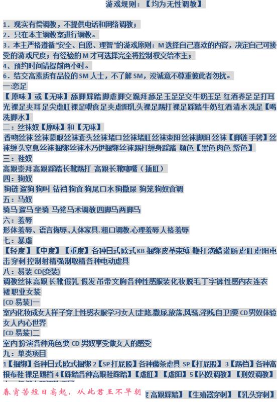 可以SM,如果不玩SM,也有普通的,服务很用心,该有的都有,也会聊天不会很尬,身材非常好,就是年龄大